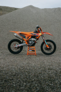 Zum Schluss die letzten Details: Eine KTM SX-F FACTORY EDITION wäre nicht vollständig ohne die neuesten Red Bull KTM Factory Racing Grafiken und Feinschliffe. Wähle die Startnummern von Tomac oder Plessinger und genieße den Anblick – die 2026er Modelle wirken an jedem Starttor wie der absolute Sieger. Weitere optische Highlights, wie der orangefarbene FACTORY EDITION-Rahmen 2026, die schwarzen Räder und der orangefarbene Werks-Sitz, setzen stilvolle Akzente und zeigen Klasse auf jedem Terrain.